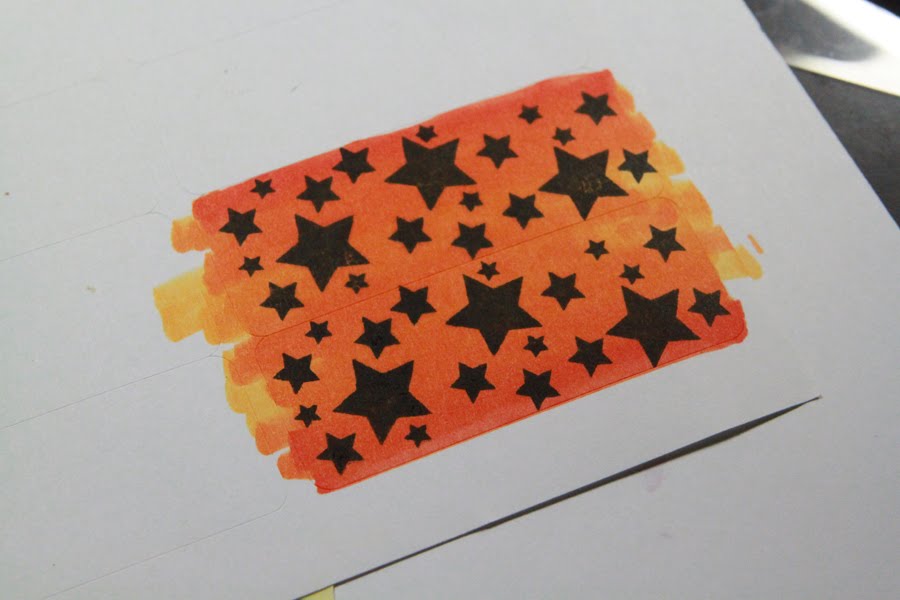 I used the star cluster stamp which fits perfectly in an Avery Address label with the True black ink.